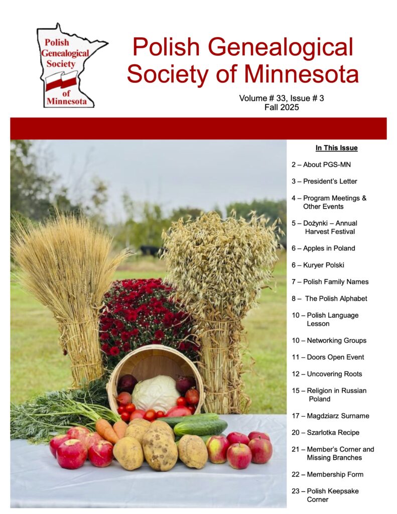 Each member receives a subscription to our quarterly newsletter that provides information for those interested in Polish research, history, and culture. Newsletters are mailed to each member in March, June, September, and December.